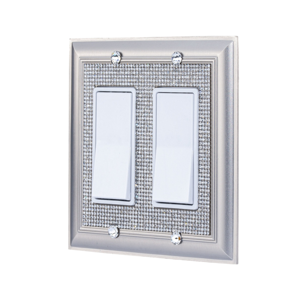 Add amazing sparkle & shine to any room with this handcrafted, rhinestone covered, satin nickel finish, beveled wall switch plate. The craftsmanship and attention to detail make these light switch plates truly a piece of art that would add a special touch to any room.