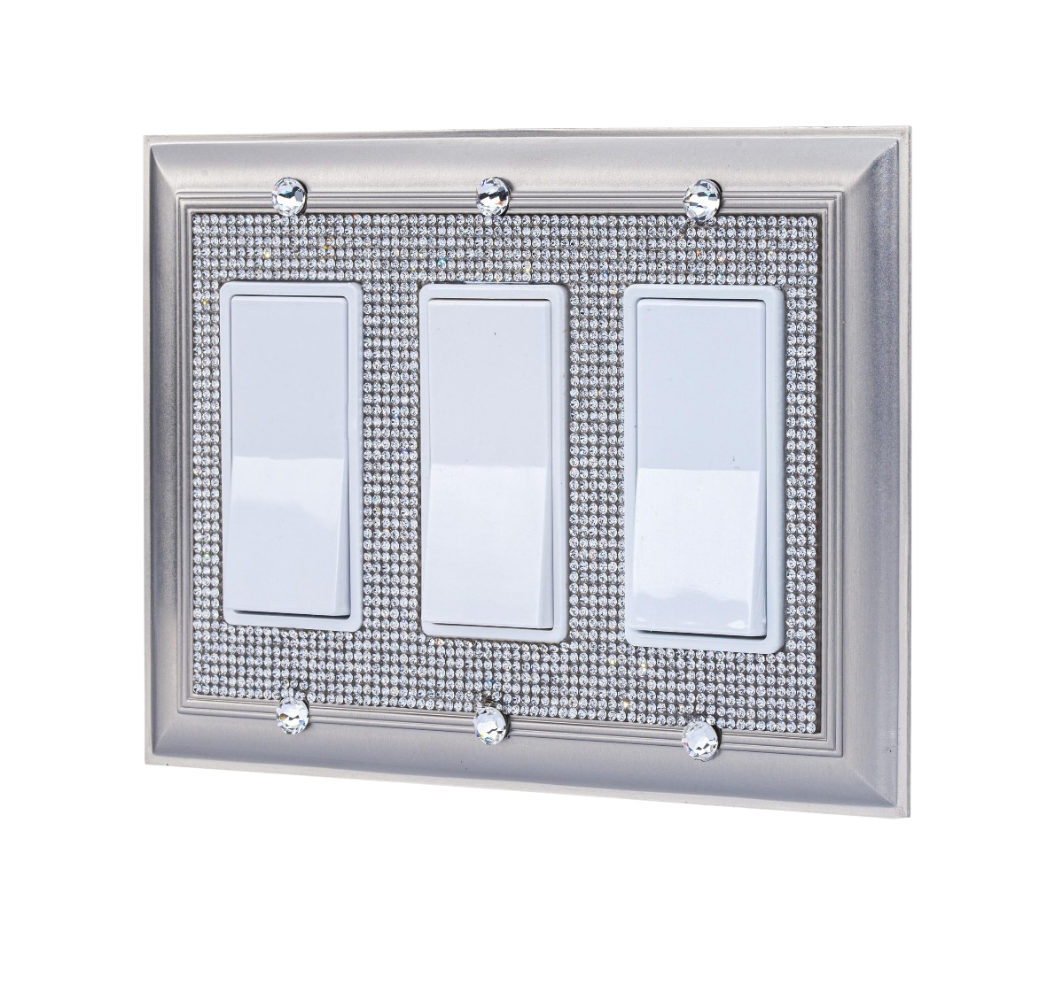 Add amazing sparkle & shine to any room with this handcrafted, rhinestone covered, satin nickel finish, beveled wall switch plate. The craftsmanship and attention to detail make these light switch plates truly a piece of art that would add a special touch to any room.